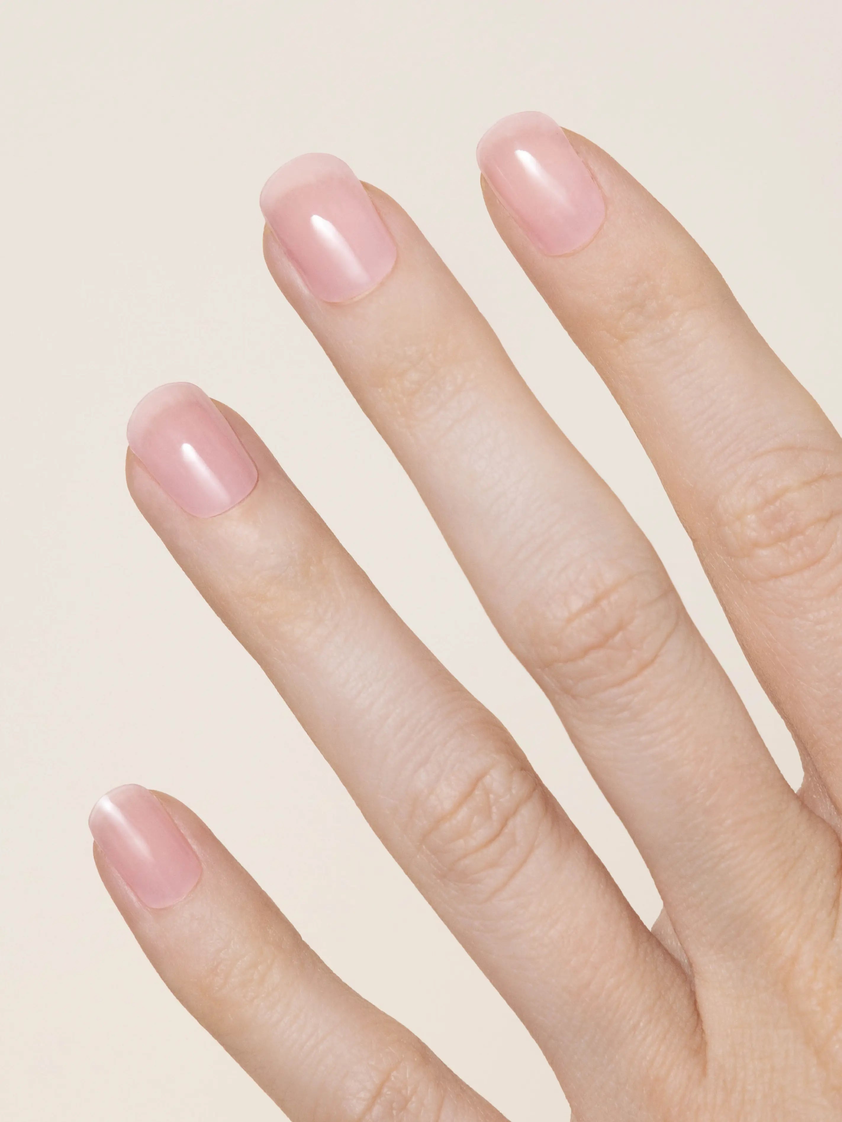 Rosy, translucent pink for a better than bare, polished look. These are the easy version of soap nails / clean girl aesthetic!