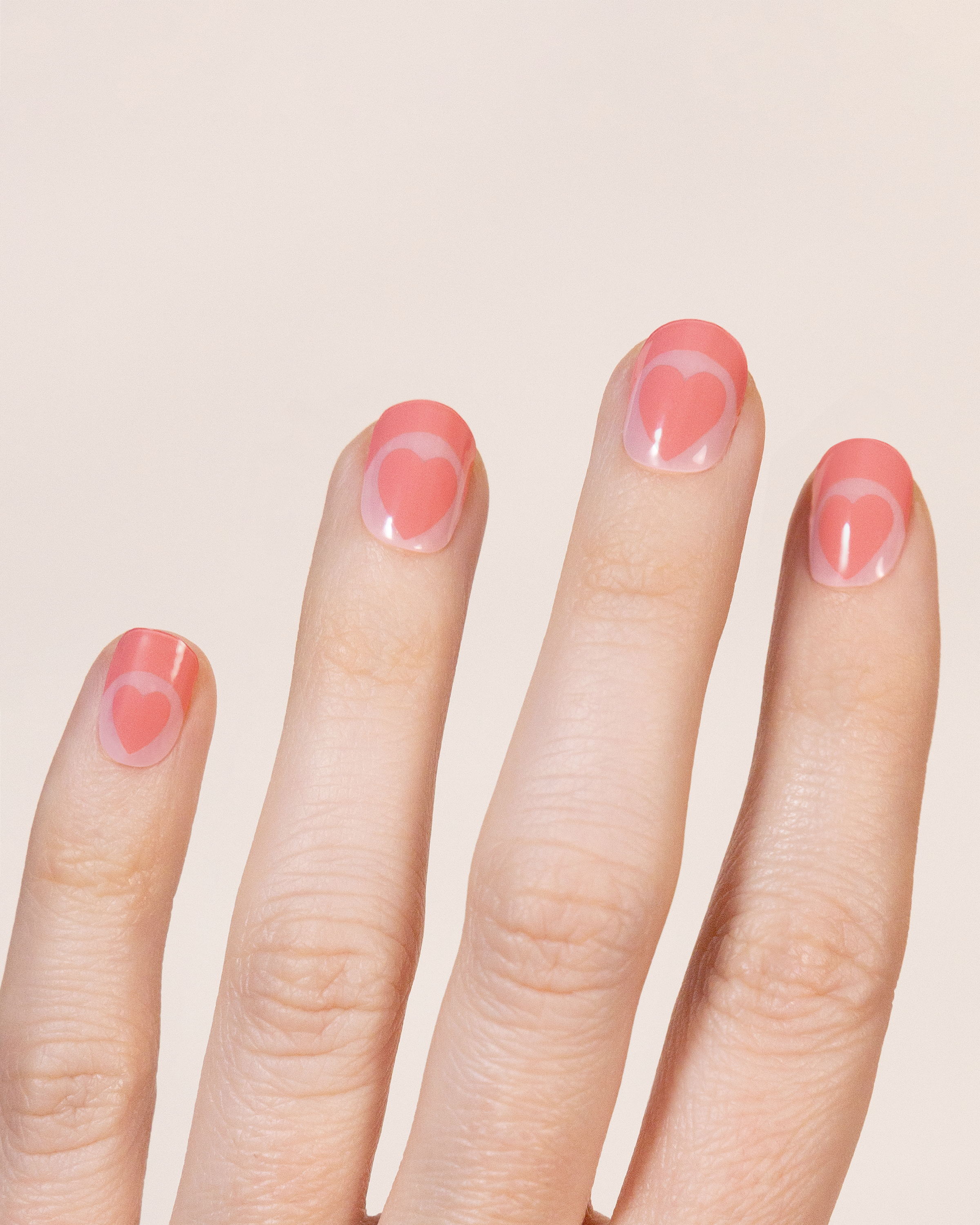 We're pretty sure if our favorite girl sent to France, this is the mani she'd be wearing. Semi-transparent pale pink with a corally-pink big heart and french tips.